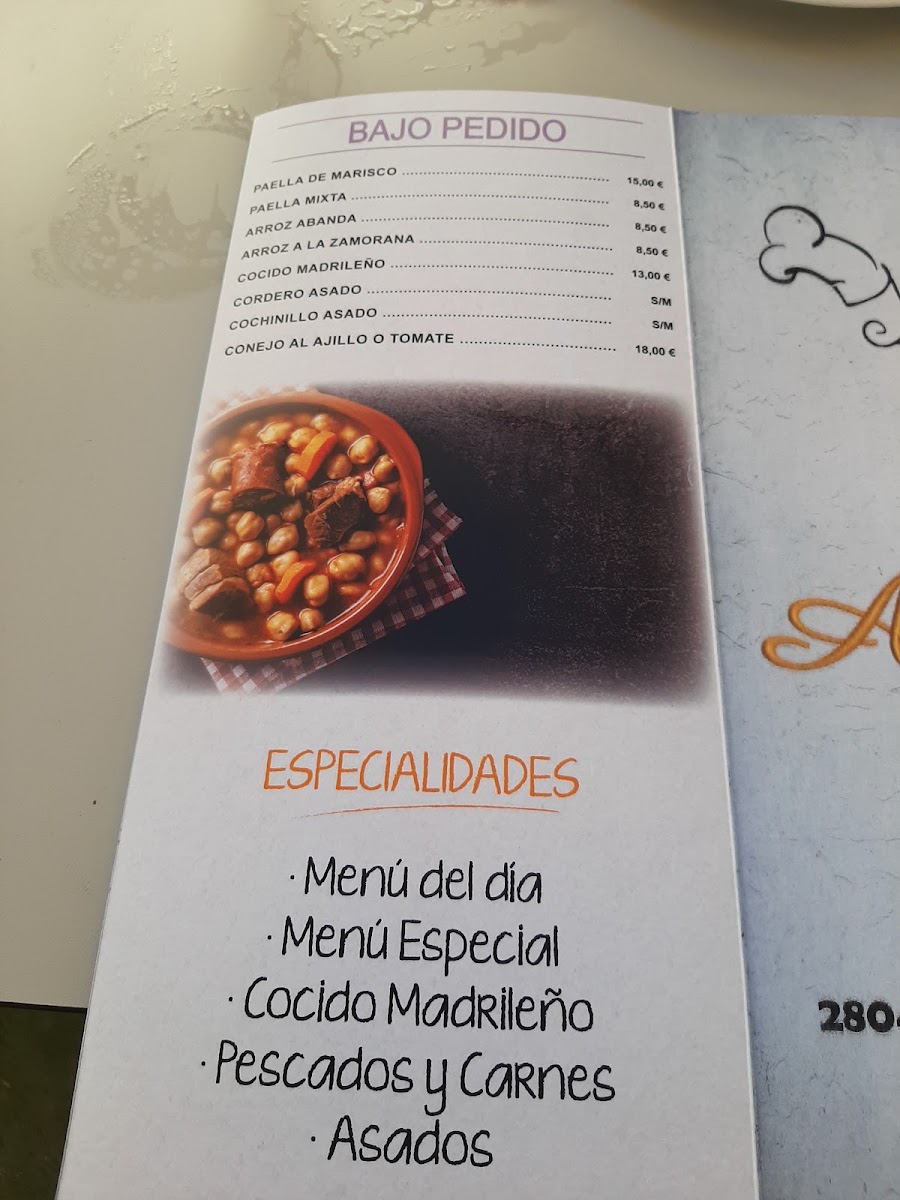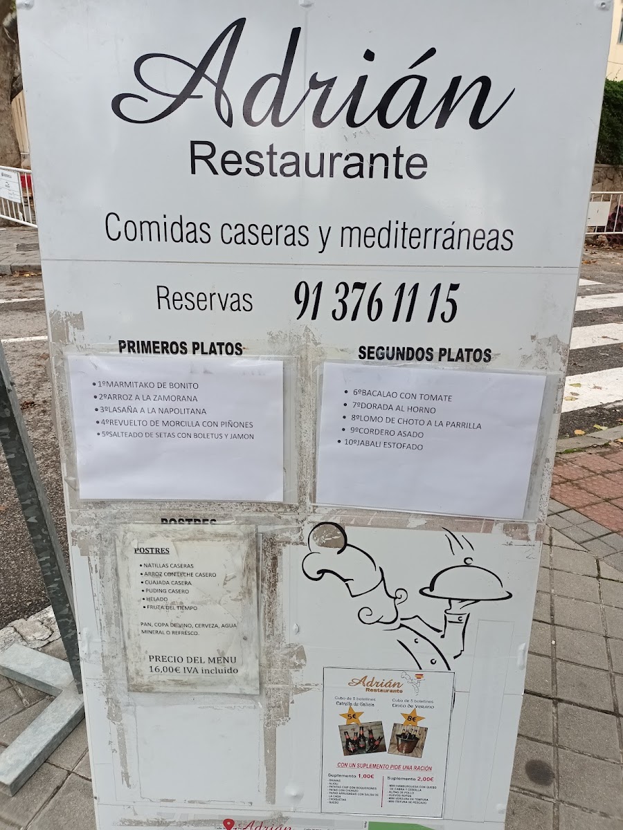 Welcome to Adrian Restaurante, tucked away in the charming neighborhood of El Pardo, Madrid. This delightful eatery offers a treasure trove of traditional Spanish cuisine that delights both locals and visitors alike. Renowned for its authentic dishes, Adrian’s menu features hearty selections such as the immensely popular cocido a los tres vuelcos, a culinary experience that requires advance reservation. Diners rave about the exceptional quality of the octopus, torreznos, and the rich arroz con chorizo—each dish showcasing the essence of homemade flavors. Guests appreciate the warm, inviting atmosphere and the attentive service, crafting an experience that feels like a meal shared among friends. Whether you’re savoring a weekend lunch or an indulgent dinner, Adrian Restaurante promises not just a meal, but a genuine taste of Spanish hospitality. It's a local gem that should not be missed!